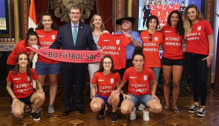 Después, tuvo el segundo recibimiento de la tarde. Juan Mari Aburto dio la enhorabuena al club bilbaino Bilbo Fútbol Sala porque la magnífica campaña realizada le ha valido el ascenso a primera división femenina. El Alcalde deseó al club mucha suerte en su nueva andadura en primera división.