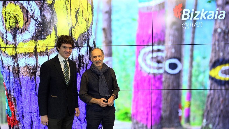 La Diputación Foral de Bizkaia replicará el Bosque Pintado de Oma, una de las obras más conocidas del pintor Agustín Ibarrola. El diputado general de Bizkaia, Unai Rementeria, ha anunciado hoy junto al hijo del artista, José Ibarrola, que se lleva meses trabajando con una comisión de expertos y expertas para evaluar las alternativas que permitan mantener con vida el conjunto artístico y natural, cerrado desde la pasada primavera ante el riesgo que supone el deterioro de algunos de los árboles del bosque.