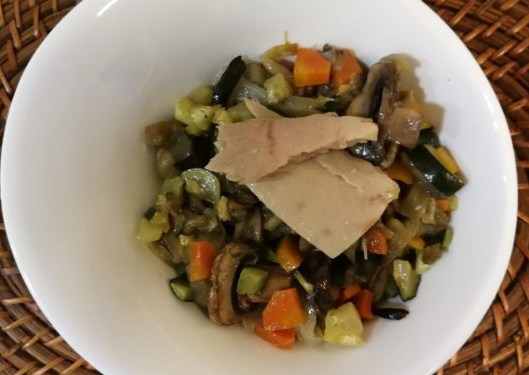 Esta semana os proponemos viajar a través de la gastronomía con un delicioso plato de ratatouille de verduras al horno. Una receta tradicional de aroma mediterráneo (la ratatouille es una especialidad de la región de Provenza y del antiguo condado de Niza, en sudeste de Francia), pero al que añadimos nuestro toque del Cantábrico con unos lomos de Bonito del Norte. Un plato completo con todos los beneficios de las verduras, el pescado azul y el aceite de oliva.