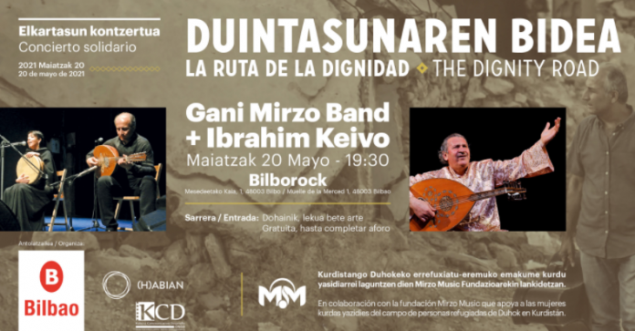 La Sala Bilborock acogerá el próximo 20 de mayo, a las 19:30 horas, el concierto solidario organizado por el Ayuntamiento de Bilbao “La ruta de la dignidad, Dignity Road”, en beneficio de las mujeres kurdas yazidíes supervivientes del Estado Islámico que se encuentran en el campo de personas refugiadas de Duhok. De la mano de Gani Mirzo Band e Ibrahim Keivo, el concierto cumple un triple objetivo en sintonía con las líneas estratégicas del Área de Cooperación y Convivencia: poner de relieve la crisis que sufre el Kurdistán iraquí, destinar los fondos a la atención psicológica de las mujeres kurdas liberadas por el Estado Islámico y concienciar a la población bilbaina sobre una situación que tiene lugar en el Sur.