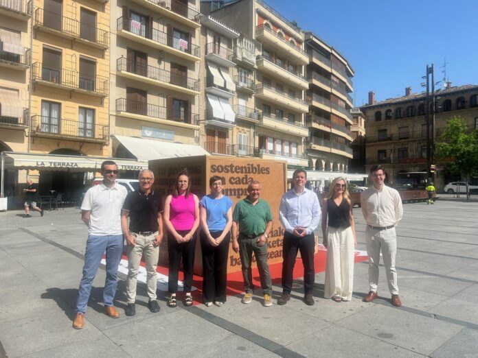 Mikel Irujo Industriako eta Enpresen Trantsizio Ekologiko eta Digitalerako kontseilariak eta Pablo Ezcurra Merkataritza eta Kontsumoko zuzendari nagusiak «Tokiko merkataritza, erosketa ona» kanpaina aurkeztu dute gaur goizean Lizarran, Nafarroan hurbileko merkataritza sustatzeko eta hurbileko, kalitatezko eta jasangarriko aukera gisa kokatzeko.