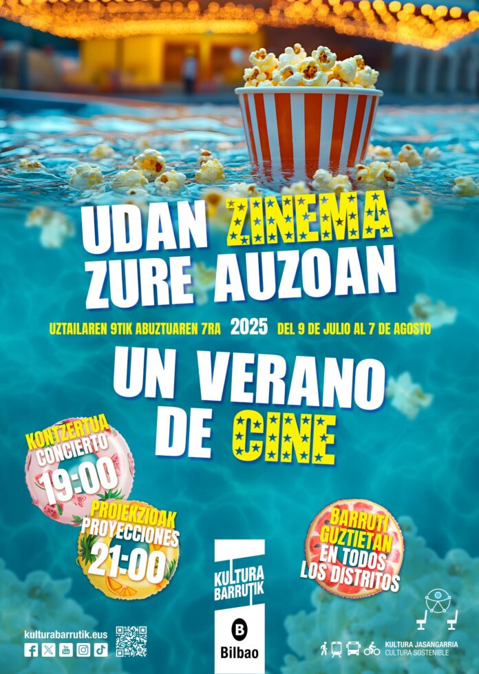 El Ayuntamiento de Bilbao ofrecerá este verano ocho sesiones de cine al aire libre en distintos barrios de Villa, en el marco de la iniciativa “Un verano de cine”. La programación se desarrollará entre el 9 de julio y el 7 de agosto, y las veladas incluirán, además de la proyección de una película y un cortometraje, una actuación musical previa.