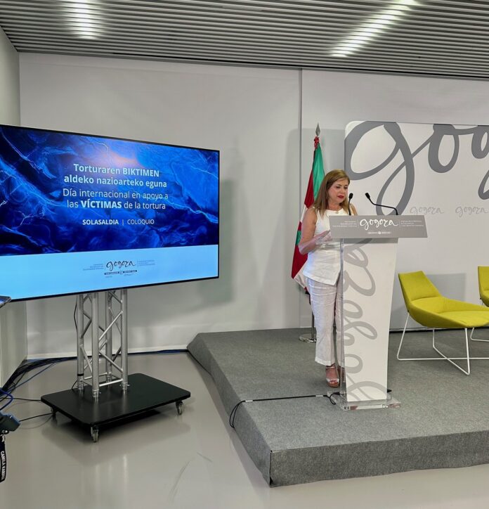 Horrela hasi du bere hitzartzea María Jesús San José, Justizia eta Giza Eskubideen sailburuak, gaur arratsaldean torturaren biktimen babeserako Nazioarteko Egunaren harira, Gogorak antolatutako solasaldian. Ekimen honekin, ikusgarritasuna eman nahi die torturaren biktimei Gogorak; izan ere, praktika horrek zuzenbide-estatuaren funtsezko zutabeak ahultzen ditu eta giza eskubideen urraketa larria da.