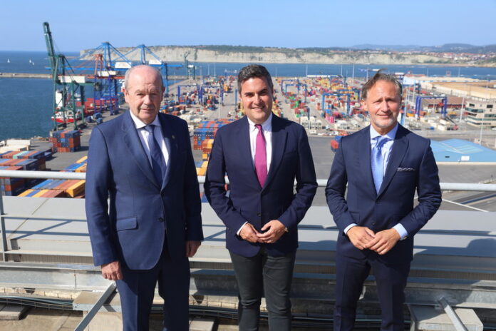 Mikel Jauregi Eusko Jaurlaritzako Industria, Trantsizio Energetiko eta Jasangarritasuneko sailburua Bilboko Portuko instalazioetan bildu da Iván Jiménez Bilboko Portuko Agintaritzako (BPA) presidente berriarekin eta Ricardo Barkalarekin, kargua utzi berri duen presidentearekin.