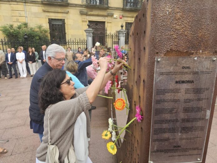 La mañana de este sábado, la Corporación Municipal de San Sebastián ha rendido homenaje a las víctimas del franquismo con una ofrenda floral ante la escultura Dual, situada en la calle Ijentea. El acto, impulsado por el Consejo Municipal de Memoria Histórica, se ha enmarcado en la conmemoración del Día de la Memoria Histórica de la ciudad.