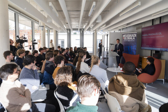 Lehendakariak gaur goizean Euskadi in the face of a changing world order izenburupean hitzaldia eskaini du Pariseko School of International Affairs Sciences Po erakundean (Sciences Po Paris), hau da, Frantziako eta Europako unibertsitate instituziorik ospetsuenetako batean. Arancha González Laya Espainiako Kanpo Harremanen ministro ohi eta aipatutako erakundeko egungo dekanoak moderatzaile-lanak egin ditu, eta Imanol Pradalesek, ehun pertsona inguruko edukieraren aurrean adierazi du historian zehar “bokazioz eta konbikzioz, Euskadi Europaren aldeko Nazio bat dela” erakutsi duela euskal gizarteak eta ekarpen propioa egin nahi duela Europar Batasunaren sorrerako printzipioei laguntzeko. “Bultzada politiko berria behar dugu, orain arte baino Europa ausartagoa eta batuagoa”. Hari beretik tiraka, gogora ekarri duenez, “borondate politikoa edukita, edozer lor daiteke”.