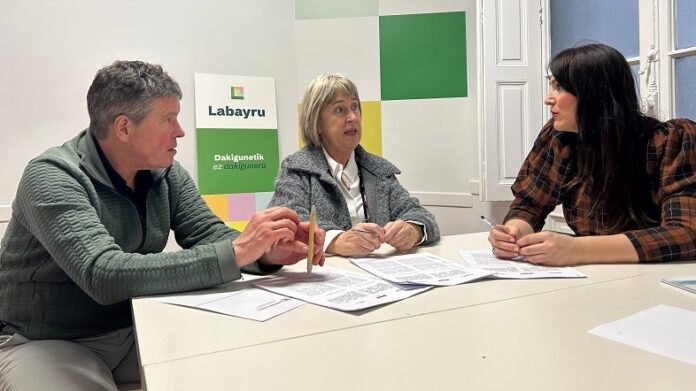 Leixuri Arrizabalagak, Euskara, Kultura eta Kirol diputatuak; Aitor Aldasorok, Hizkuntza Politikako sailburuordeak eta Igone Etxebarriak, Labayru Fundazioko zuzendariak, hiru erakundeek elkarlanerako oinarri orokorrak ezartzen dituen esparru-hitzarmenaren berri eman dute.
