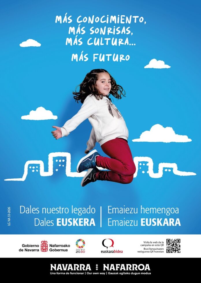 Nafarroako Gobernuko lehendakariorde eta Memoria eta Bizikidetzako, Kanpo Ekintzako eta Euskarako kontseilari Ana Ollok eta Euskarabidea-Euskararen Nafar Institutuko zuzendari kudeatzaile Javier Arakamak euskararen balio sozial eta kulturala sustatzeko kanpaina aurkeztu dute gaur, seme-alaba adingabeak dituzten Nafarroako familiei zuzenduta. «Dales nuestro legado, dales euskera / Emaiezu hemengoa, emaiezu euskara» lelopean, Memoria eta Bizikidetzako, Kanpo Ekintzako eta Euskarako Departamentutik, Euskarabidearen bitartez, sustatutako kanpaina hau urtarrilaren 26tik eta otsailaren 15 artean garatuko da. Horrekin, Foru Gobernuak euskararen ezagutzaren aldeko mezu positiboa helarazten dio nafar gizarteari, berezko hizkuntza hau belaunaldi berrientzat baliabide baliotsua dela azpimarratuz, gero eta ingurune anitzago eta eleaniztunagoan.