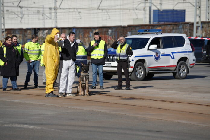 La Ertzaintza ha realizado recientemente un ejercicio operativo en el entorno portuario de Santurtzi, donde se simuló el hallazgo de una mochila sospechosa junto a un vagón que transportaba mercancías peligrosas en instalaciones gestionadas por ADIF.