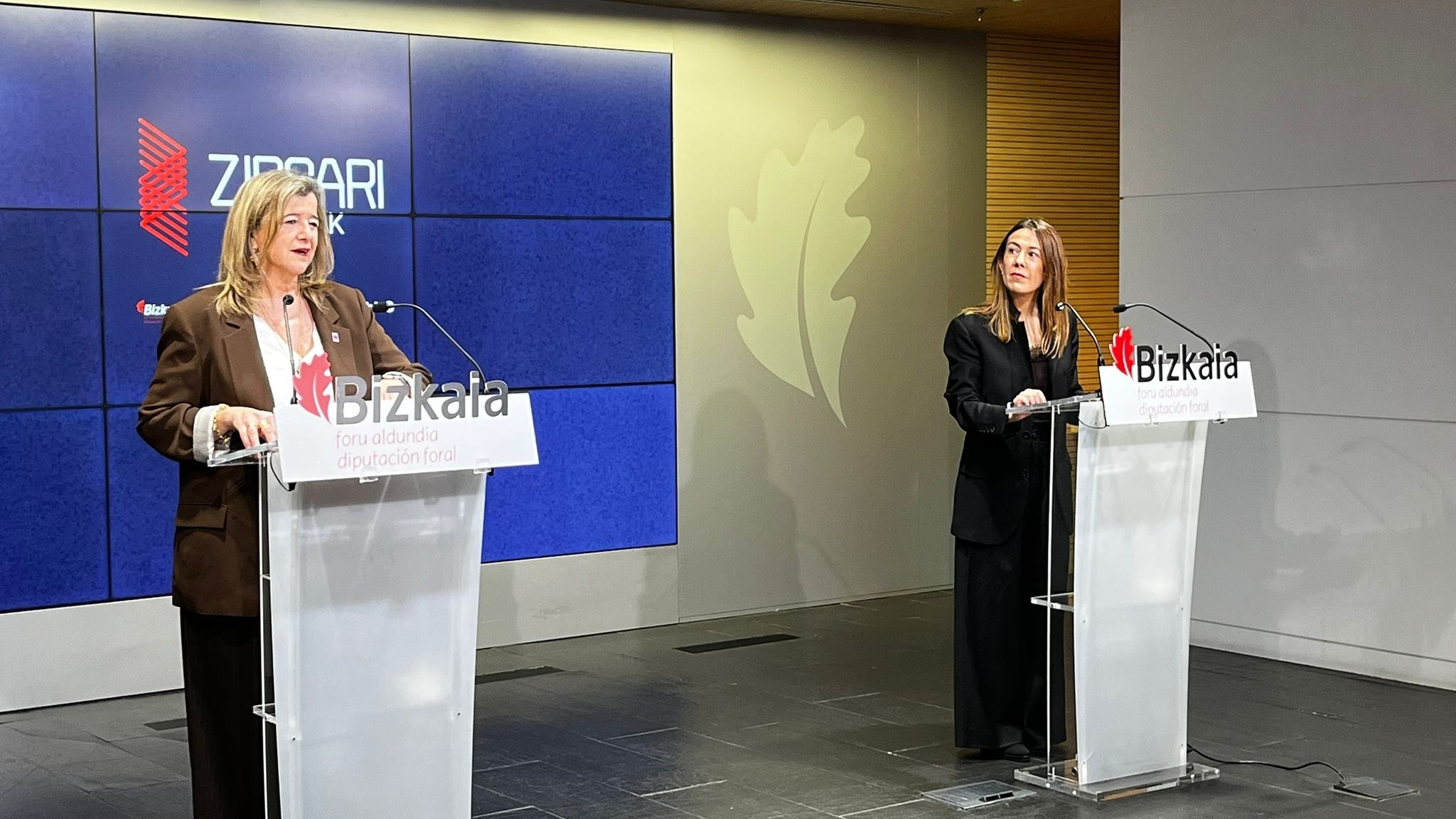 La Teniente de Diputada General y Diputada Foral de Empleo, Cohesión Social e Igualdad de Bizkaia, Teresa Laespada, y la Directora de la Obra Social BBK, Nora Sarasola, han dado a conocer el fallo del jurado en rueda de prensa.