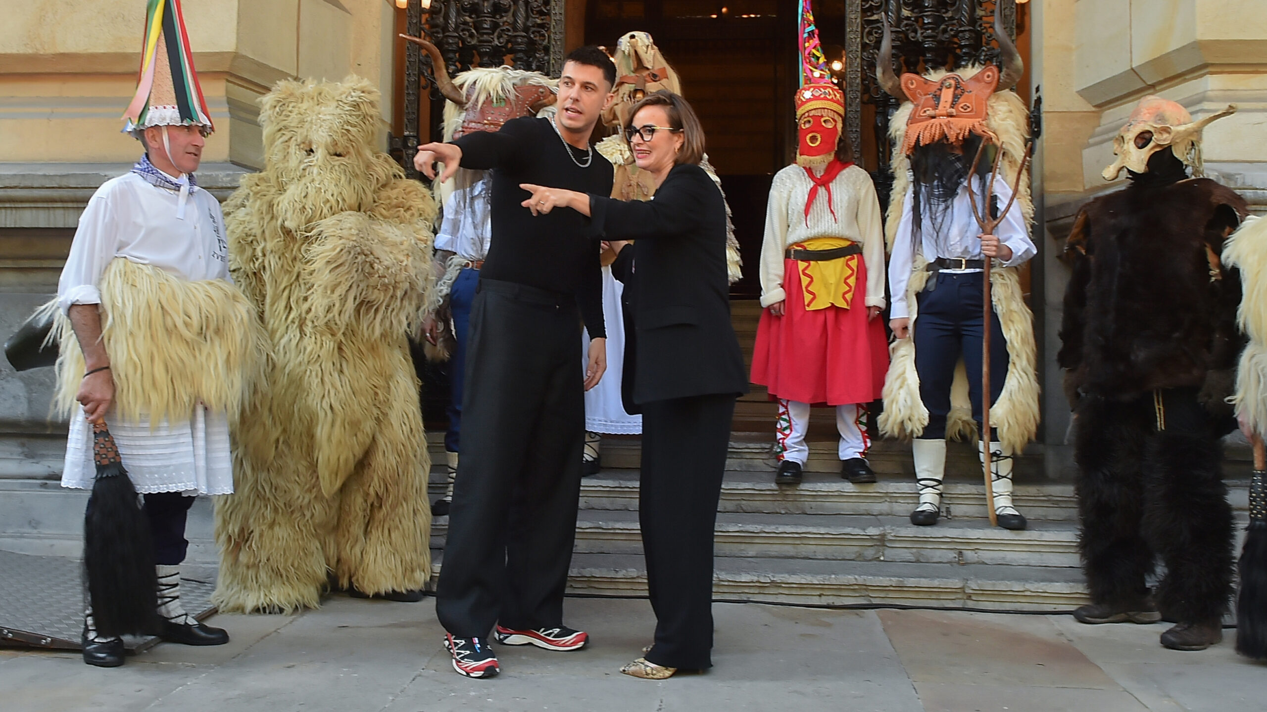 La rueda de prensa ha estado precedida por una acción de calle relacionada con el espectáculo, y tras las declaraciones a la prensa, Pello Reparaz deleitó al público con una pequeña actuación frente al palacio foral.