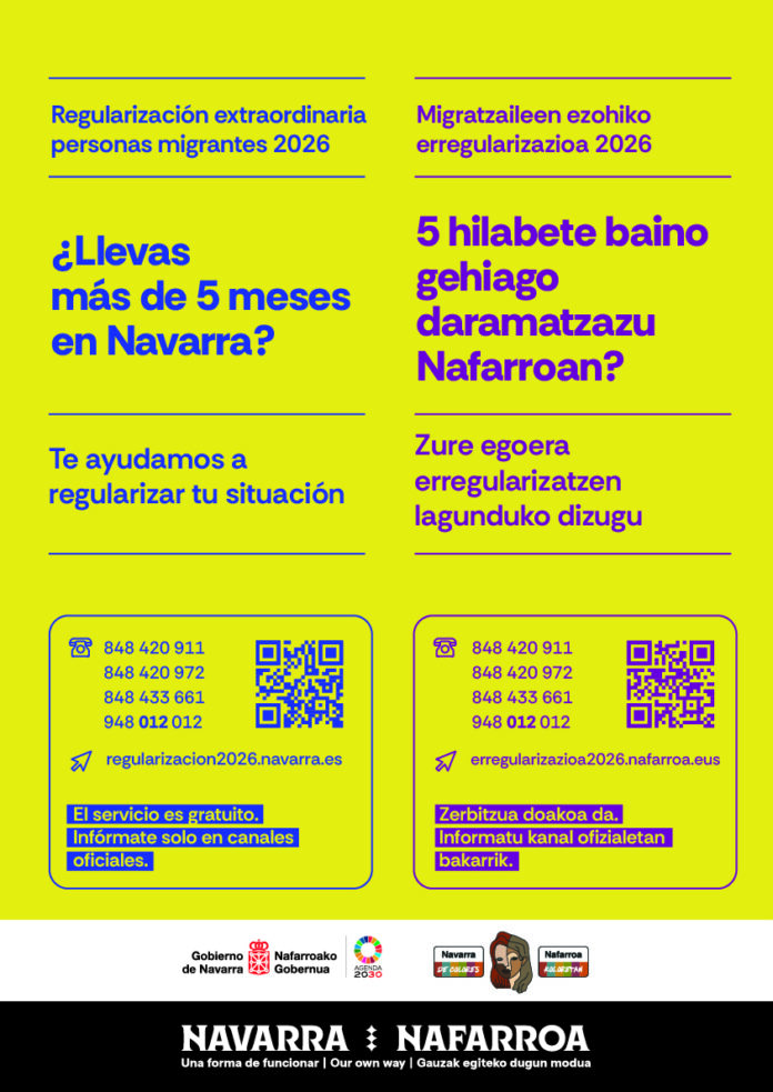 Nafarroako Gobernuak, gaurko bilkuran, 150.000 euroko diru-laguntzaren deialdia baimendu du, migratzaileen ezohiko erregularizazio-prozesuan (joan den ostegunean aktibatua) esku hartzen ari diren erakundeei zuzenduta. Hain zuzen ere, erakunde sindikalentzako eta Atzerritartasun Laguntzaileen Erregistro Elektronikoan inskribatutako irabazi asmorik gabeko erakundeei zuzendutako diru-laguntzak dira, eta horien helburua da administrazio-erregularizaziorako eskaera egiten ari diren pertsonei ematen dieten arreta espezifikotik eratorritako langile- eta funtzionamendu-gastuak finantzatzea.