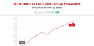 Enpleguak joera positiboarekin jarraitzen du Nafarroan 1.598 afiliazio gehiagorekin otsailean eta...