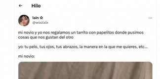 Le pide a su novio que le diga lo que le...