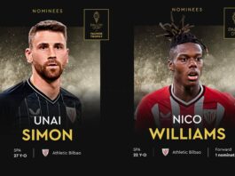 Nico Williams nominado al Balón de Oro y Unai Simón al Yashin