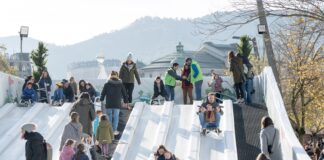 El Ayuntamiento de Bilbao inicia el montaje de la pista de patinaje, el tobogán de...