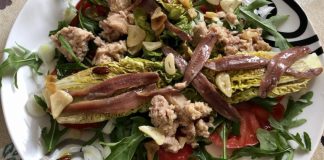 Ensalada templada de cogollos braseados con atún, anchoas y aliño de...