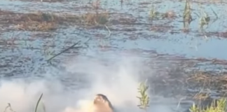 Un cocodrilo engulle un dron y comienza a echar humo