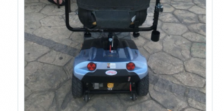 La pegatina que tiene una mujer mayor en su silla de...