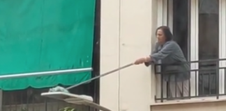 Una mujer de Granada sorprende limpiando la farola de su calle