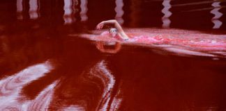 Nada en un lago «de sangre» para protestar contra la invasión...