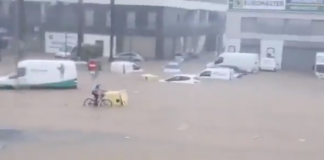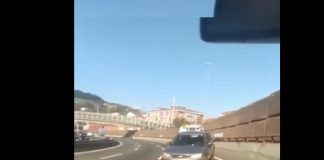 Una grúa lleva un coche de forma peligrosa por Bilbao