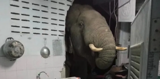 Un elefante destruye la pared de una casa para ‘saquear’ la...
