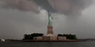Impactante tormenta eléctrica sobre la Estatua de la Libertad