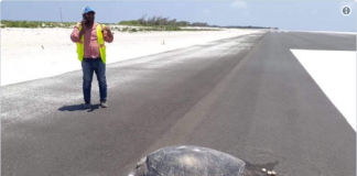 Una tortuga desova en una pista de aterrizaje donde antes había...