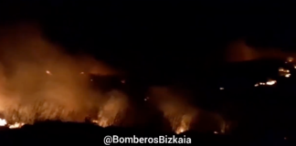 Efectivos de Bizkaia y Cantabria sofocan un incendio forestal en el...