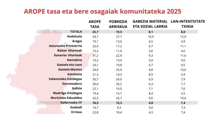 Nafarroa da pobrezia tasa gehien jaitsi den bigarren komunitatea, %12,3an kokatu baita