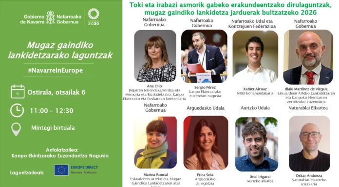 Nafarroako Gobernuko Memoria eta Bizikidetzako, Kanpo Ekintzako eta Euskarako Departamentuak, Kanpo Ekintzako Zuzendaritza Nagusiaren bitartez, mintegi birtual bat antolatu du toki entitateei eta elkarteei zuzendutako mugaz gaindiko lankidetzarako laguntzak ezagutarazteko eta azaltzeko. Mintegia otsailaren 6an, ostirala, izango da, 11:00etan, eta Ana Ollo lehendakariorde eta Memoria eta Bizikidetzako, Kanpo Ekintzako eta Euskarako...