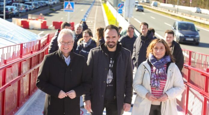 El diputado de Sostenibilidad, José Ignacio Asensio, junto a la alcaldesa de Amasa-Villabona, Beatriz Unzue, y el alcalde de Irura, Gorka Murua, ha inaugurado el nuevo bidegorri que une ambos municipios, una infraestructura clave para fomentar la movilidad activa, sostenible y segura tanto para desplazamientos cotidianos como para el ocio.