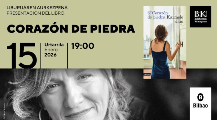 Urtarrilak 15, osteguna. “Corazón de piedra”, Karmele Jaio. Txani Rodriguez idazle eta kazetaria izango da berarekin aurkezpenean.