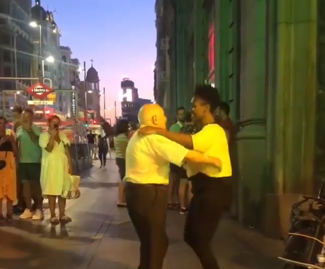 Esta escena grabada el sábado en la Gran Vía de Madrid ha sido vista por más de un millón de personas en las redes sociales.¡Disfrutadla!