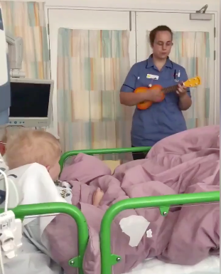 Esta es Beth, la enfermera que anima a los niños con cáncer con su ukelele en el hospital. La madre del menor del vídeo ha querido agradecerle su magnifica labor publicando este fragmento.
