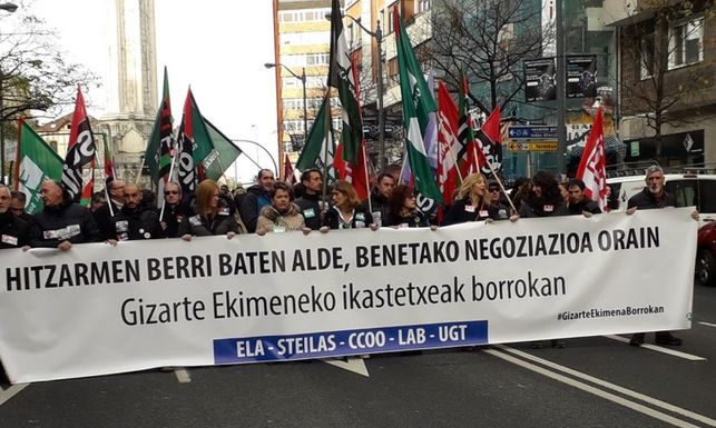 Convocados por los sindicatos ELA, Steilas, LAB, CC. OO. y UGT, a las 11:30 horas, los trabajadores partirán en manifestación desde el Boulevard de Bilbao y finalizarán ante la sede de Kristau Eskola.