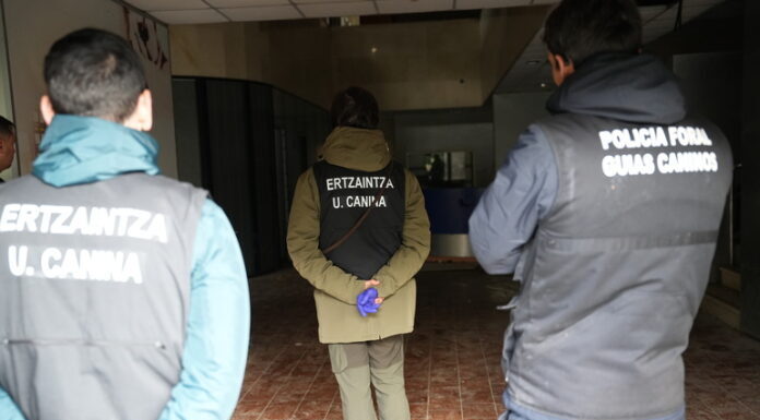 Ertzaintzaren Lehergailuak Indargabetzeko Unitateak, Ertzaintzaren Txakur Unitateak eta Nafarroako Foruzaingoaren Txakur Gidarien Taldeak prestakuntza-jardunaldi bateratu batean parte hartu dute, lehergailuak detektatzen adituak diren txakurrak sustantzia horiek askatzen dituzten usainak aurkitzen treba daitezen.