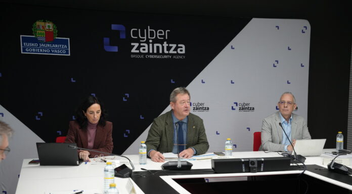 Bingen Zupiria Segurtasuneko sailburua buru dela eta Javier Diéguez Cyberzaintzaren zuzendari nagusia bertan dela egin da gaur goizean Cyberzaintzaren, Euskadiko Zibersegurtasun Agentziaren, Administrazio Kontseiluaren bilera. Bertan jorratu diren gaien artean, nabarmentzekoa da 2026rako aurrekontu-proiektuaren aurkezpena, 6.415.000 eurokoa, bai eta 2026rako jarduera-plan orokorra ere.