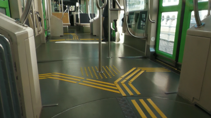 Euskotren instalará en los tranvías un modelo propio de suelo podotáctil que facilitará el viaje a personas con baja visión