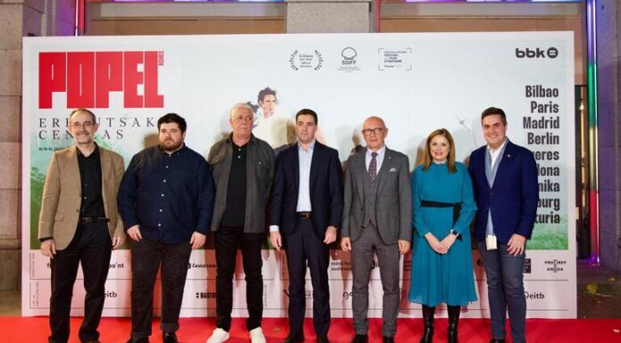 Imanol Pradales Lehendakaria ‘Popel’ dokumentalaren aurkezpenean izan da gaur arratsaldean, Bilboko BBK Aretoan.