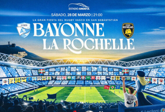 Donostiak Frantziako ligako TOP-14ko partida bat hartuko du datorren larunbatean, martxoak 28, Anoeta Estadioan. Oraingo honetan, Aviron Bayonnaisek La Rochelle taldearen aurka jokatuko du.