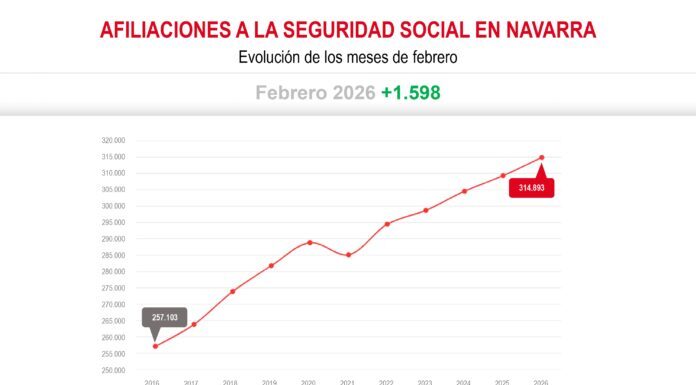 Nafarroak enplegua sortzen jarraitzen du. Gizarte Segurantzaren otsaileko datuen arabera, afiliazioak gora egin du urtarrilaren aldean: 1.598 pertsona gehiago, hau da, +%0,51. Beraz, enplegua sortzeko bidera itzultzen da, eta modu esanguratsuan egiten du. Izan ere, serie historikoan otsailean izandako hirugarren igoerarik handiena da. Urtean 5.551 afiliazio gehiago daude lan-merkatuan, duela urtebete...