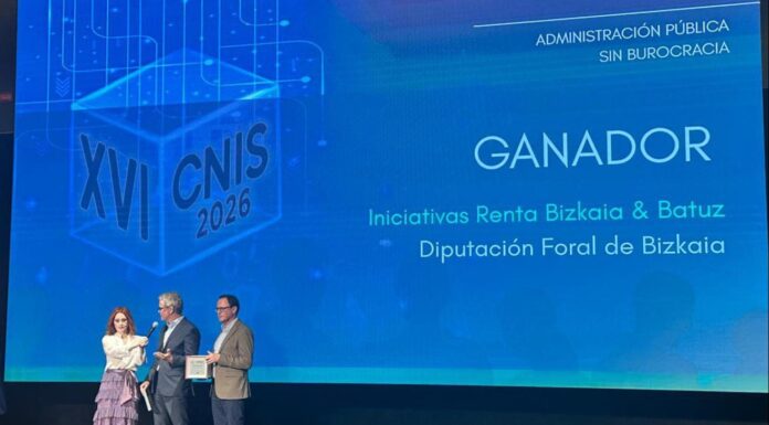 La gestión innovadora de la Diputación Foral de Bizkaia en materia fiscal y administrativa ha sido reconocida en los XVI Premios CNIS 2026, celebrados en el marco del Congreso Nacional de Innovación y Servicios Públicos en Madrid. La institución foral ha recibido el premio en la categoría Administración Pública Sin Burocracia, entre un total de 226 candidaturas...